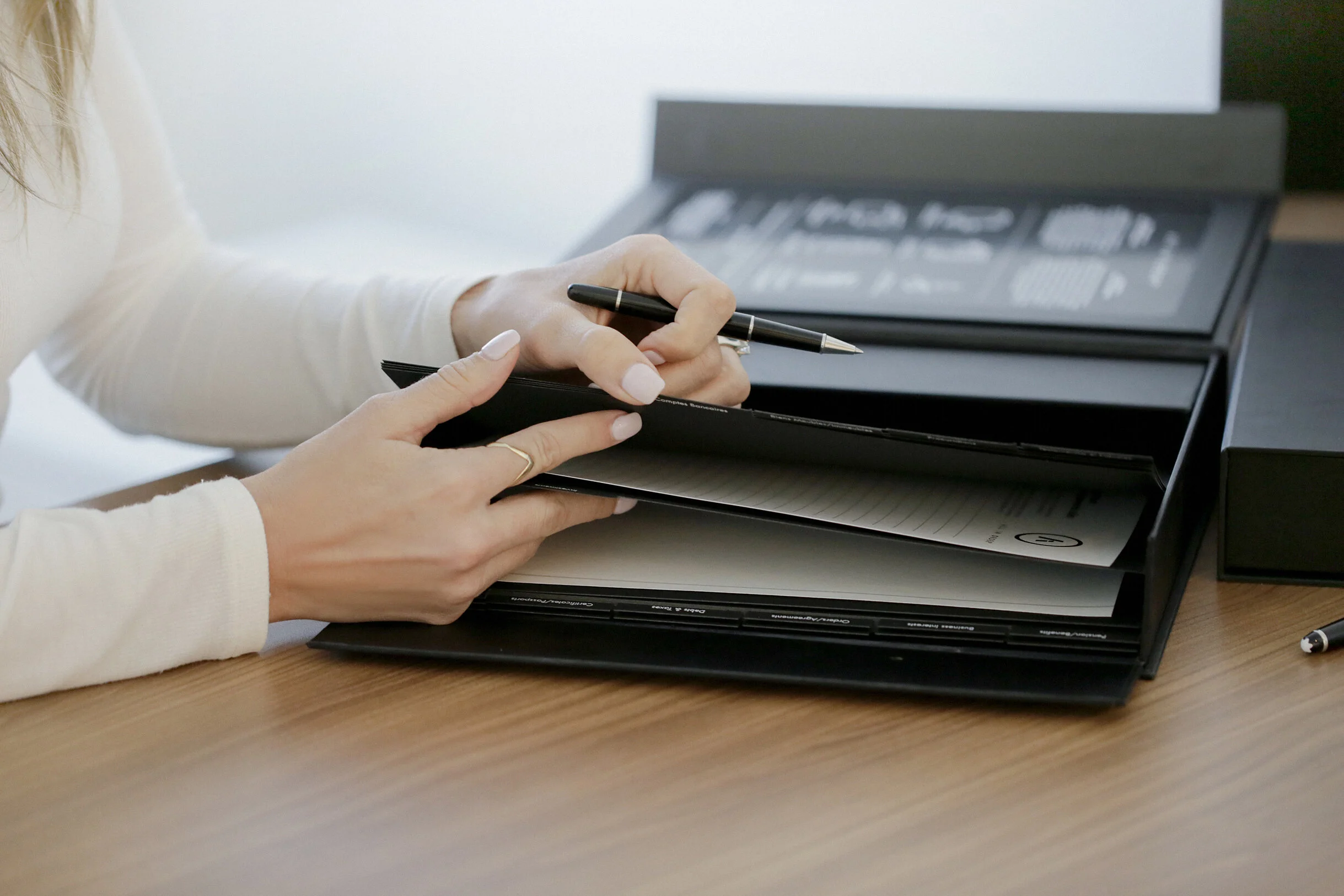 Alors voilà… je vous présente la boite ALL IN ORDER™ (Tout en ordre) ! Un produit qui vous permet d’organiser tous vos papiers personnels (y compris vos documents de nature juridique, médicale et financière), les données relatives à votre résidence et à votre véhicule, ainsi que les certificats et informations de contact dont vos proches pourraient avoir besoin en vue d’administrer votre patrimoine et de distribuer vos biens... devait-il se présenter une situation d’urgence ou quelque événement ayant un impact sur votre vie quotidienne.
